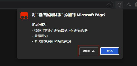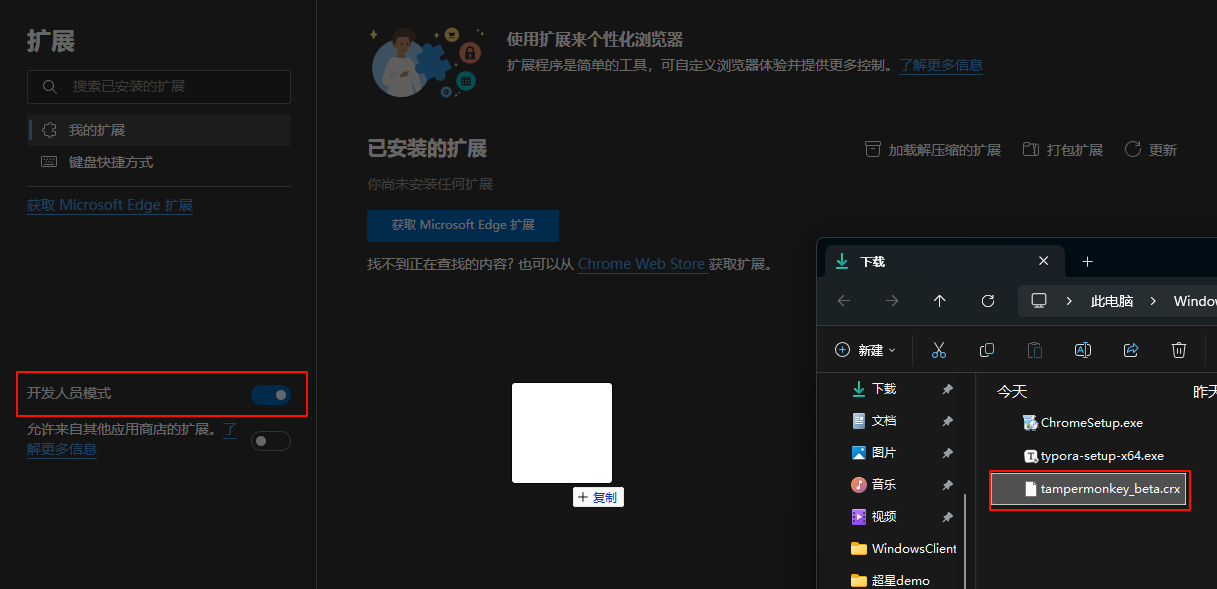 打开开发人员模式,并将下载好的篡改猴文件拖入其中